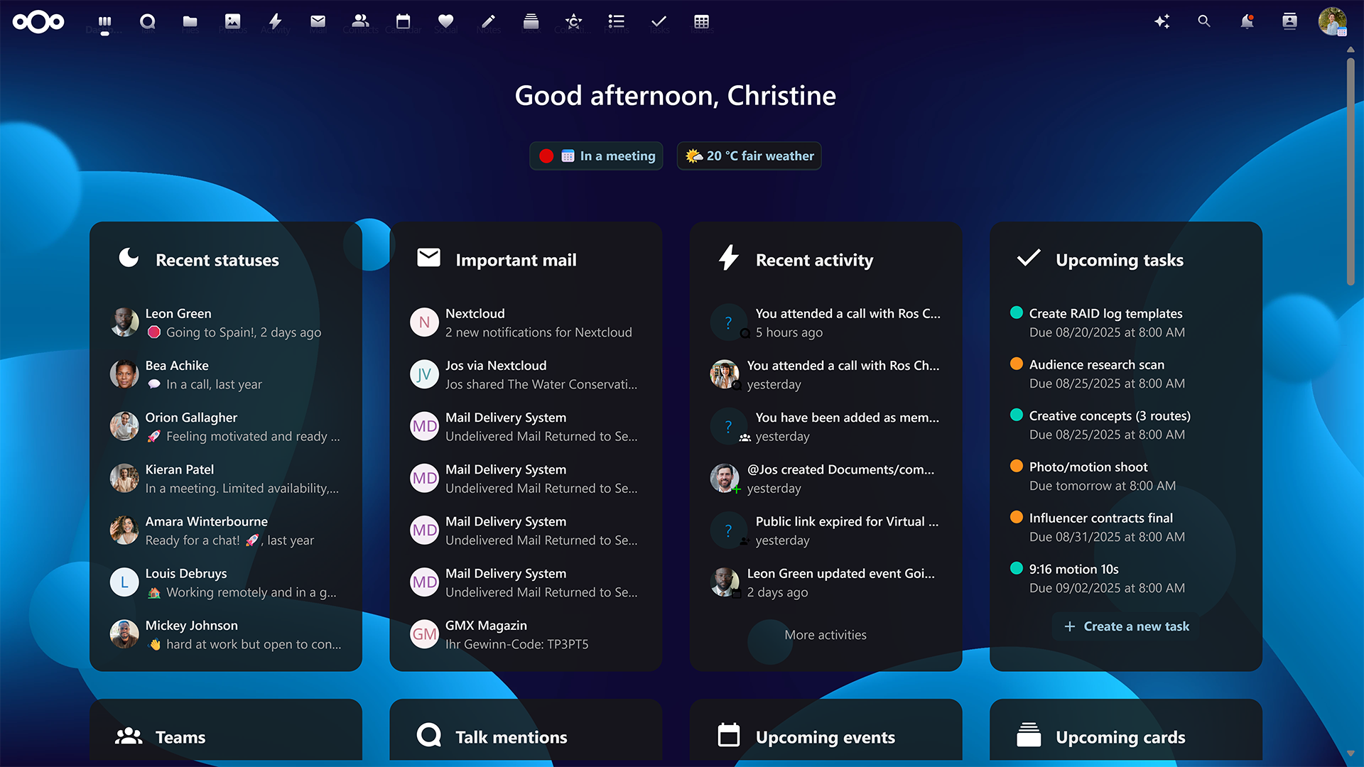Nextcloud Hub 25 Autumn is easy to get started with — for both admins that get it running and end users that get their work done with our tools. Lets explore some of the new day-to-day features that ease you in.